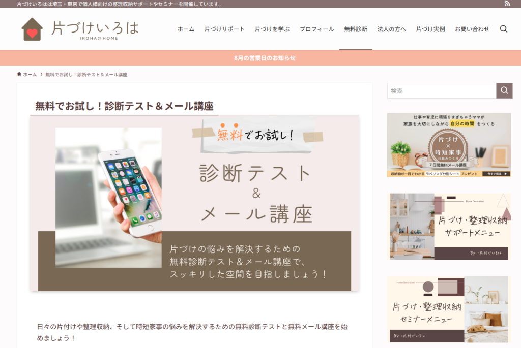 2019年よりWEB発信支援と個人宅の整理収納サービスを提供している。