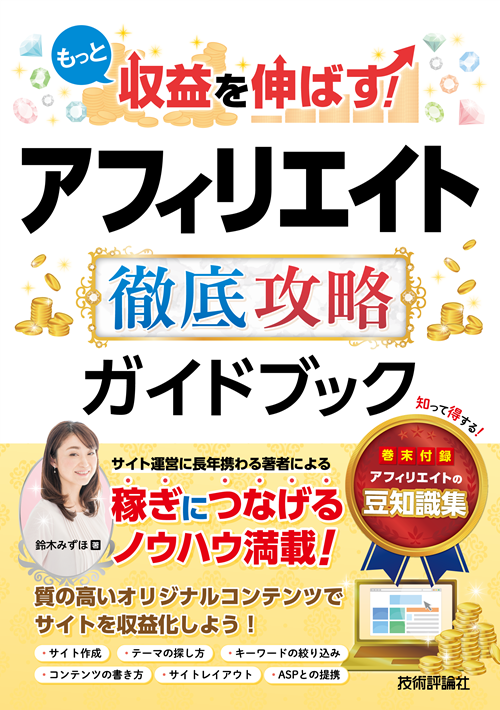著書に『もっと収益を伸ばす!アフィリエイト徹底攻略ガイドブック』(技術評論社)がある。